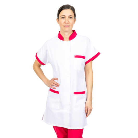 Tunique TELMA bicolore de la marque PBV en 65% polyester et 35% coton. Avec son col officier qui lui ajoute une touche formelle et sa fermeture par pressions cachées, la TELMA est confortable et polyvalente. Elle habillera parfaitement de nombreux secteurs comme ceux du soin, de l'aide à la personne et du médical