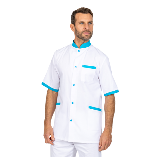 Tunique TEO bicolore de la marque PBV en 65% polyester et 35% coton. Avec son col officier qui lui ajoute une touche formelle et sa fermeture par pressions cachées, la TEO est confortable et polyvalente. Elle habillera parfaitement de nombreux secteurs comme ceux du soin, de l'aide à la personne et du médical