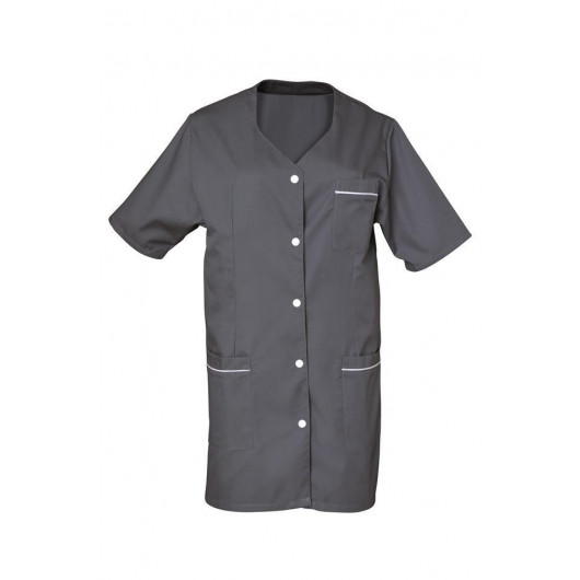 Cette tunique femme HELENE de la marque SNV est une tunique manche courte en polyester coton, d’hauteur 85cm et disponible en plusieurs colories. Elle dispose d’une fermeture cinq pressions calottes blanches, d’une encolure hirondelle, d’une poche poitrine ainsi que deux poches basse ce qui la rend pratique. Idéal pour tous types de métiers.