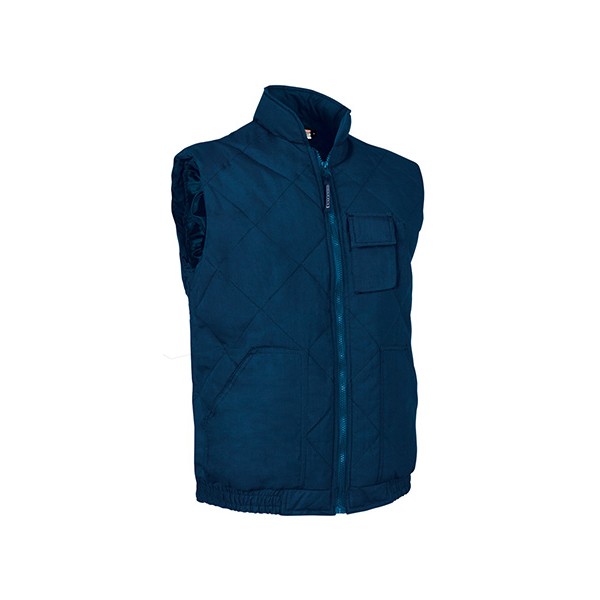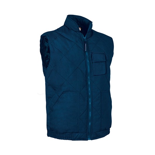 Gilet hiver WORKER de la marque VALENTO. Gilet de travail traditionnel, simple et efficace. Matelassé avec col droit, 3 poches extérieures dont une pour le téléphone, serrage élastique à la taille. Rembourrage chaud avec protège reins. Très bon rapport qualité prix.