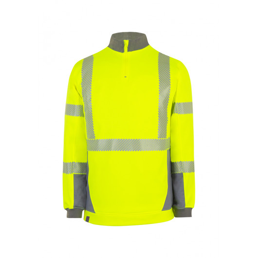 Sweat DARWIN de la marque T2S. Sweat shirt haute visibilité, conçu à partir d'un molleton gratté une face Nittex Warm, le sweat DARWIN est un EPI haute visibilité chaud et trèsconfortable.Les bandes rétroréfléchissantes microbilles RETHIOTEX segmentées thermocollées vous garantissent unesouplesse et une légèreté inégalées.