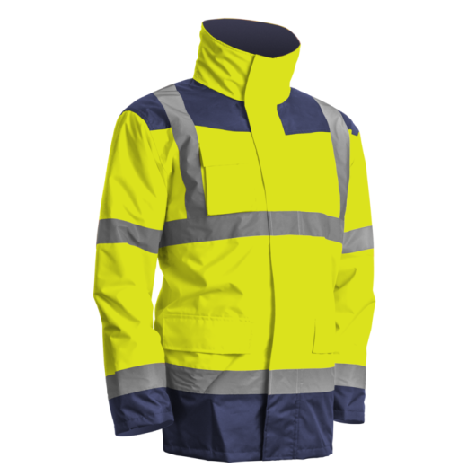 Parka 4 en 1 haute visibilité, polyvalente grâce à la veste intérieure amovible. Résistante, légère, chaude et confortable. Parka extérieure imperméable, veste intérieure amovible doublée polaire, avec manches amovibles pour en faire un gilet si besoin.