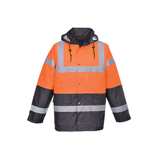 Parka S467 de la marque PORTWEST. Parka haute visibilité orange fluo, avec 4 poches extérieures, 1poche intérieure, poignet en tricot intérieur et capuche détachable. Bande rétro réfléchissante sur le corps et les bras, imperméable et résistant aux taches grâce au tissage OXFORD 300D.