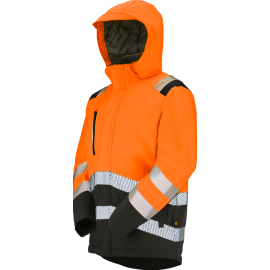Poignets ajustables, bandes rétroréfléchissante segmentées thermocollées, garantissant une parka souple et confortable, et non rigide.