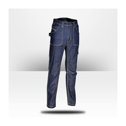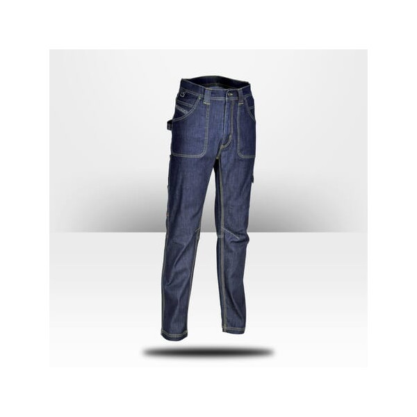 Le jean PAMPLONA, multipoche, résistant et léger, est une pantalon de travail garantissant un confort absolu : en stretch, il sera souple et accompagnera les mouvements, et en tissu innovant COOLMAX, il garantit une absorption rapide de la transpiration. Ainsi, l'utilisateur sera au sec et au frais même par les fortes chaleurs. Habillé, avec des coutures contrastées, il est polyvalent et peut être porté en toutes occasions